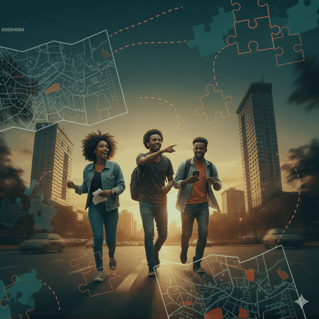 Solve clues, complete fun challenges, and race through Addis like never before — then wrap it all up with a lively mixer at the final location.